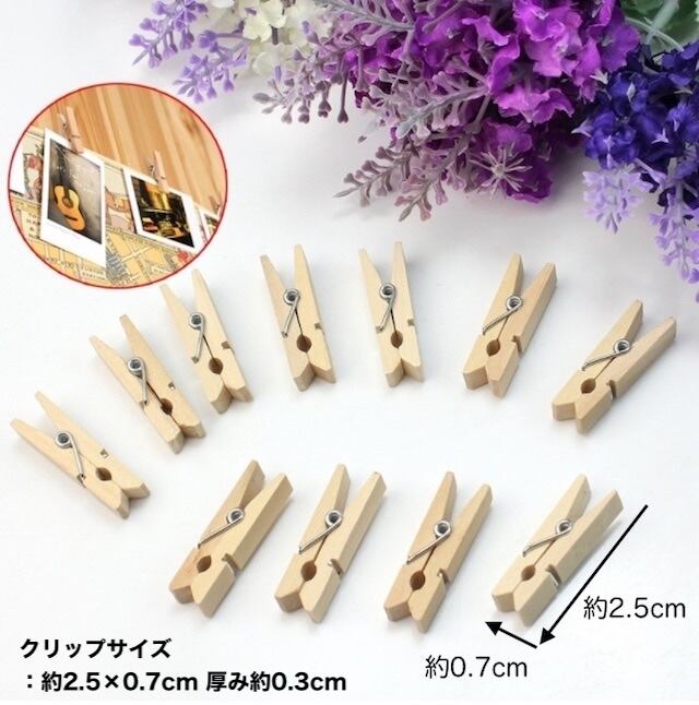 ウッドクリップ 木製クリップ クロスピン ミニサイズ 2.5×0.7cm 50個セット