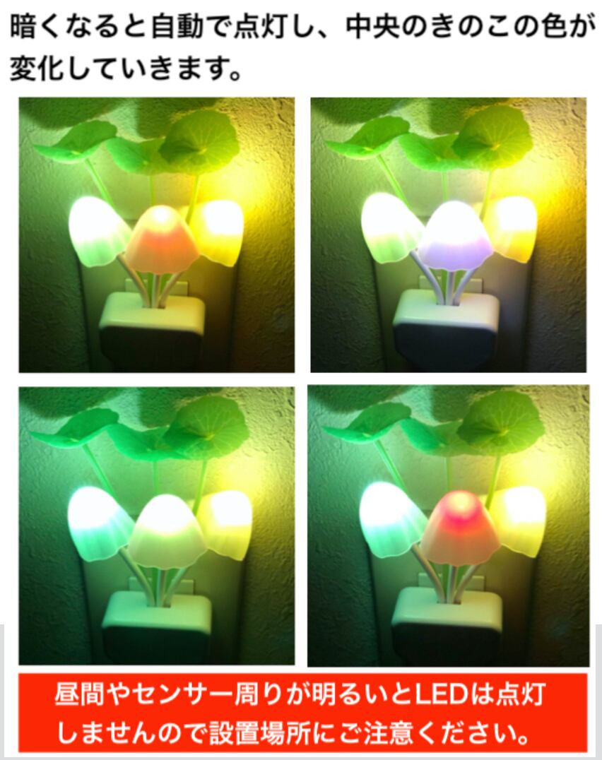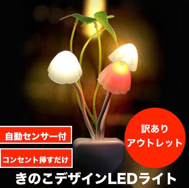 【訳ありアウトレット品】きのこ型 LEDライト センサーライト ナイトライト 自動点灯 自動消灯 足元灯 寝室灯 階段灯