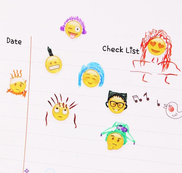 スマホや携帯のメールでおなじみの絵文字がシールになった商品です。